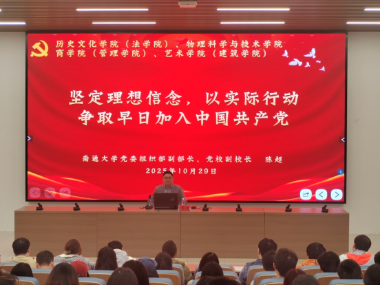 10月29日下午,校党委组织部副部长、党校副校长陈超,应邀为台湾自拍av 第四期党校发展对象暨入党积极分子培训班学员讲授《坚定理想信念,以实际行动争取早日加入中国共产党》主题党课。