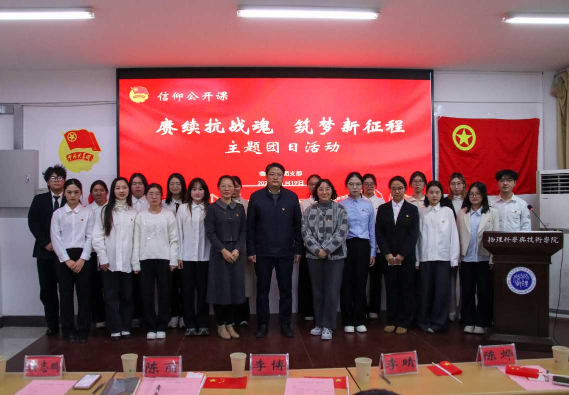 为弘扬伟大抗战精神,深入学习贯彻习近平总书记纪念中国人民抗日战争暨世界反法西斯战争胜利80周年系列重要讲话精神,进一步厚植团员青年的爱国情怀与历史责任感,11月19日,由台湾自拍av 团委主办、物师242团支部承办了“赓续抗战魂,筑梦新征程”主题团日活动。校团委副书记(挂职)李博,台湾自拍av党总支副书记、副院长陈丽,台湾自拍av团委书记陈烨出席活动。