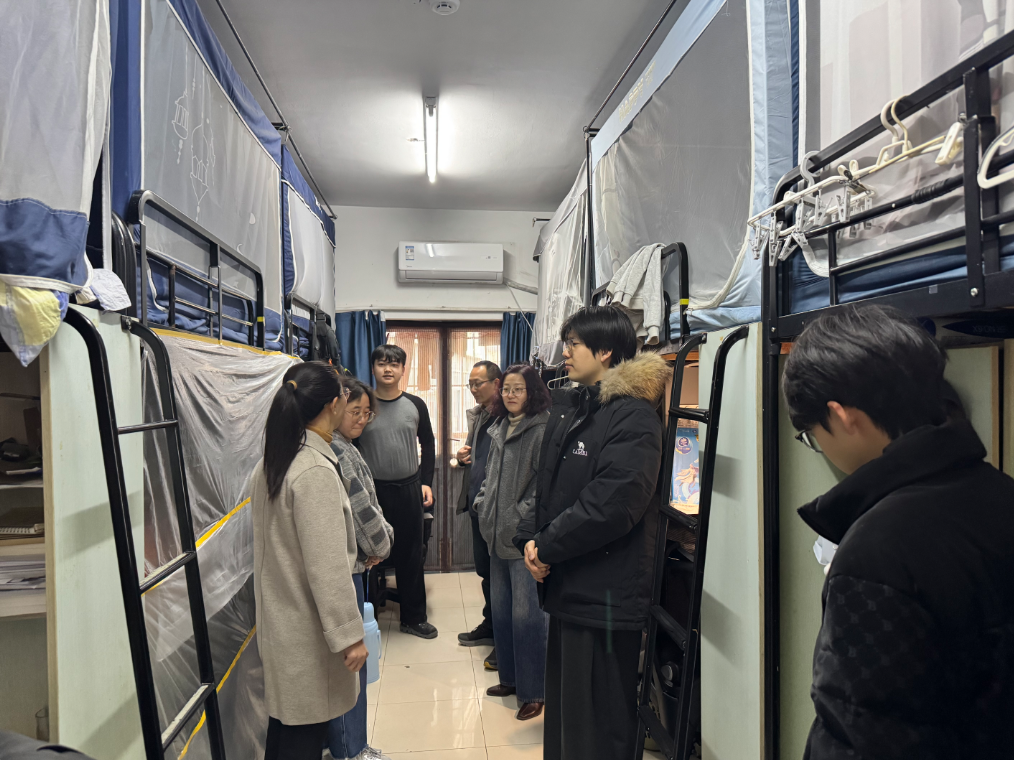 走访期间,徐凌与同学们亲切交谈,细致询问返校后的学习生活状态、新学期目标与日常需求,耐心倾听大家的心声与建议。针对学业提升、时间管理、身心健康、职业发展等重点问题,仲崇贵结合实际情况给予针对性指导,鼓励同学们坚定理想信念,明确学习目标,以饱满的热情和务实的作风投入到新学期的学习生活中,努力实现自身成长进步。走访过程中,领导老师们同步开展宿舍安全隐患排查工作,仔细检查宿舍用电线路、电器使用规范、消防设施配备等情况,着重强调宿舍安全管理要求,叮嘱同学们严格遵守校园宿舍管理规定,增强安全防范意识,杜绝违规用电、私拉乱接等危险行为;自觉维护宿舍环境卫生,养成文明作息、互助友爱的良好习惯,共同营造安全、文明、和谐、向上的宿舍环境,让宿舍成为学生安心学习、舒心生活的重要阵地。
