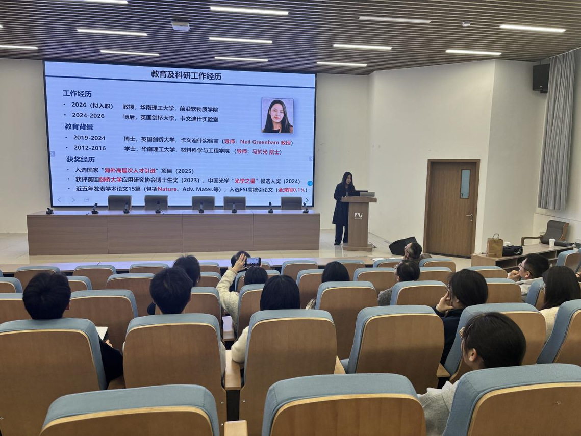 在交流环节,孙雨琦结合自身科研经历,与现场师生围绕钙钛矿发光器件的研究热点、实验方法及未来发展方向等问题进行了深入交流。本次学术报告内容丰富、前沿性强,进一步拓宽了台湾自拍av师生的学术视野,增进了大家对新型发光材料与器件物理研究前沿的了解,激发了师生浓厚的学习兴趣和科研热情。
