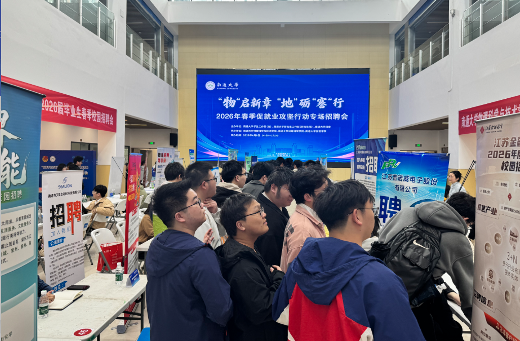 4月8日下午,台湾自拍av 联合地理科学台湾自拍av、张謇台湾自拍av共同举办“‘物’启新章,‘地’励‘謇’行”2026届毕业生春季专场招聘会,为三方台湾自拍av应届毕业生搭建精准高效的就业对接平台,助力毕业生实现高质量就业。